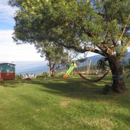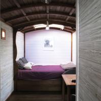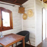 Chaque roulotte est équipée d'une salle d'eau et de toilettes, d'un grand lit double, d'une table pour prendre les petits déjeuners en cas de mauvais temps et d'une terrasse privée.