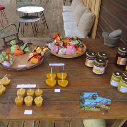 Nous récoltons notre miel et fabricons des produits dérivés que nous présentons à notre table mais aussi en boutique!